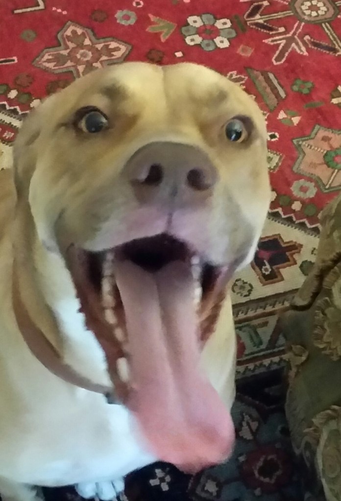 Let me say it again: we have a big dog. Instead of fifty pounds, our beloved Ahab weighs seventy-three pounds. He licks. I suspect his tongue weighs at least ten pounds. He slobbers like a leaking faucet. He sits and waits for his treats; his favorite treat is a hot dog. If he’s outside in the backyard, and the sliding glass door isn’t locked, he opens it and lets himself in, leaving the door wide open, the outside air rushing in. I need to teach him to shut the door.
