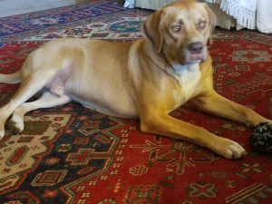 Ahab is big and sly. My husband, son, and I saw him in the kennel at the shelter, crouched in the corner, looking to be about fifty pounds, a medium-sized dog. He licked our hands, still slouched, crouched, crunched up, and we decided he was the perfect dog, the perfect weight, the perfect everything for us. That scoundrel. Attached to a leash, he hunched low to ground, minimizing his size, and came toward us pulling the homeless attendant down the hall, to the office where we had just paid our fees and signed the papers. We didn’t realize that Chance, the dog that we would rename and call Ahab, was a big beast until we got him home. None of us would say anything at first. We stared at him. We looked at each other. We commented on his huge paws and his amazing strength.