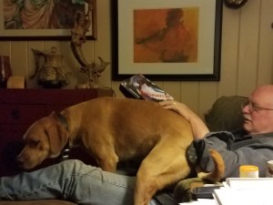 I’m going out with one my dog’s today. Ahab. He’s the big one. A mixture of this and that: Lab and Pit and perhaps something else. He came from the homeless shelter for dogs. That’s what I call it. The homeless shelter. The official name to the place that cared for Ahab for so long is Tift County Animal Shelter.