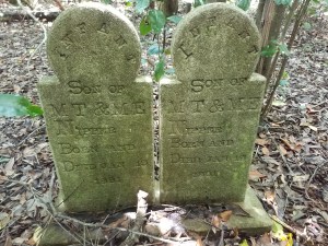 In spite of my lack of planning, my husband and I discovered many headstones and slabs, most of those on my list. But I failed to find the grave of Samuel Story’s and Anna Brown’s infant son. With so many headstones broken and swallowed by the earth, it is possible the missing grave of Samuel Story’s son will never be found.